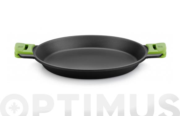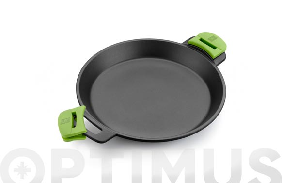 Es la pieza perfecta para arroces, pero también puede utilizarse paraasar piezas de carne o pescado de gran tamaño. Fabricada en Aluminio fundido, la pieza PRIOR representa el futuro en los fogones. Concebidapara tener la máxima robustez y gran resistencia a la deformación. Revestimiento antiadherente interior y exterior TEFLON® PRIOR de la más alta calidad y libre de PFOA. Respeta todo el sabor y propiedades de los alimentos sin permitir que los alimentos se peguen y asegurando unalimpieza increíblemente fácil. Apta para todo tipo de encimeras. Aptapara su limpieza en lavavajillas. Construida en una sola pieza. Apta para el horno. Incluye asas de silicona termo aislantes fácilmente desmontables y por lo tanto de limpieza fácil e higiénica. Espesor en la base 5,5 mm.