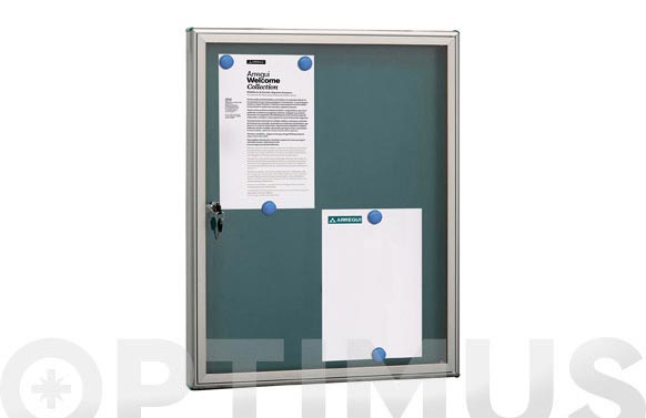 Panel para anuncios con el cuerpo de aluminio natural y puerta de plexiglas, capacidad 4 hojas DIN A4, medidas: alto 690 mm, ancho 550 mm, fondo 47 mm, incluye imanes de sujección