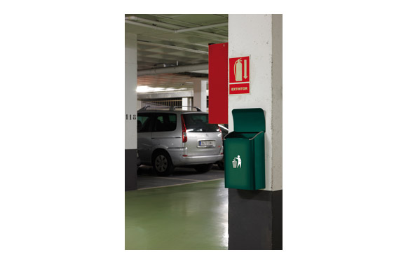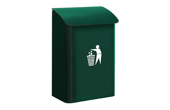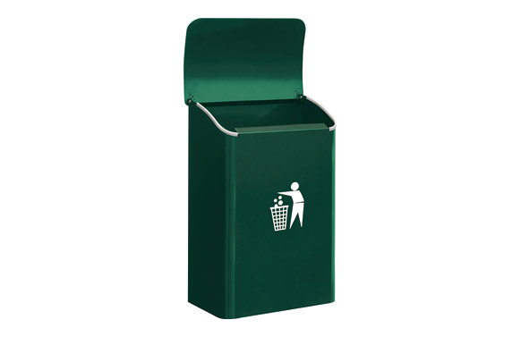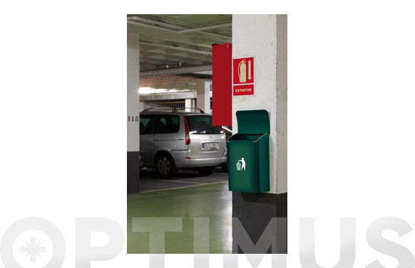 Material: Acero Papelera de acero adecuado para su uso en garajes, parkings, inmuebles, etc. Para facilitar la recogida de los residuos depositados requiere la colocación de una bolsa de plástico en su interior. Capacidad: 18l Incluye agujeros y tornillería para sujeción a la pared.