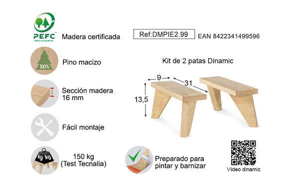 JUEGO DE 2 PATAS DINAMIC Patas de pino macizo preparado para barnizar o…
