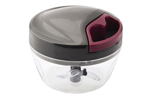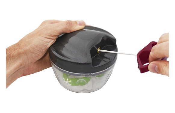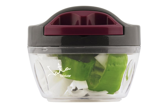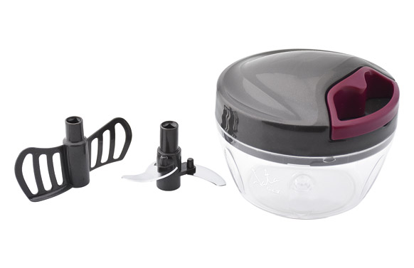 Mecanismo de tracción manual. 2 accesorios intercambiables: – Cuchilla de acero inoxidable con 3 alturas de corte. Para picar todo tipo de alimentos, ajos, cebolla – Pala para batir, mezclar y emulsionar. Para realización de salsas cremas y condimentos. Libre de BPA.