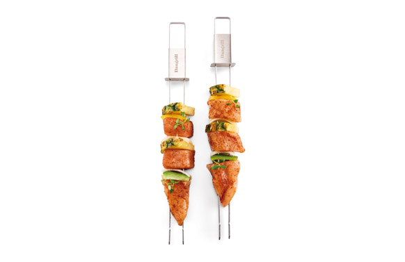 Tamaño 36x4x3cm. Espesor 1.2 / 2 mm 2 pinchos por unidad para una mejor estabilidad. Función de empuje para sacar fácilmente la comida delpalo Material acero inoxidable 18/0