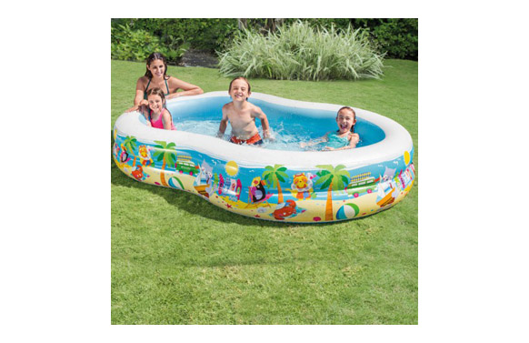 Piscina hinchable para niños, medidas 262x160x46 cm con estampado de dibujos veraniegos. Material y complementos: piscina fabricada con vinilo resistente de larga duración con 2 aros hinchables, tapón desagüe.Capacidad: piscina con capacidad para 700 litros de agua y el baño de 3 niñosEdad: la edad mínima recomendada es para niños mayores de 3 años. Mantenimiento: incluye parches de reparación para reparar pequeños poros o arañazos