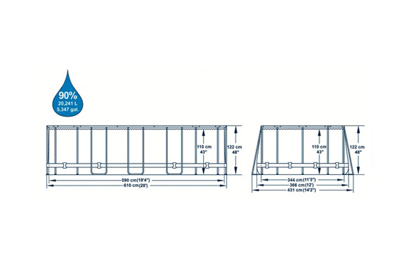 Construida con materiales resistentes con armazones metálicos resistentes al óxido y revestimiento de Tritech, un material duradero que está reforzado para quesea más fuerte y resistente a las perforaciones. El exterior está impreso con undibujo de madera. Este modelo incluye una depuradora de cartucho de 5.678 litros/hora. Incluye una escalera y un cobertor . Cuenta con un dispensador ChemConnect que mantiene y proporciona agua limpia y saludable para la piscina liberandoel cloro necesario. Gracias a la válvula de drenaje se podrá vaciar rápidamente. Características: – Tamaño: 610 x 366 x 122 cm. – Forma: Ovalada. – Color: Madera. – Capacidad de agua: 20.241 L. – Depuradora de cartucho 5.678 L/H. – Edad recomendada: + 5 años. – Estructura de metal resistente a la corrosión. – Material: Tritech con paredes laterales de 3 capas de PVC y poliéster de alta resistencia. – Contenido: 1 piscina, 1 depuradora cartucho, 1 escalera, 1 cobertor, 1 dispensador de cloro y 1 parche de reparación.