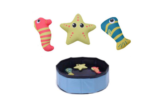 Piscina para gatos, 30 x 10 cm. Incluye 3 accesorios flotantes y fondo brillante.