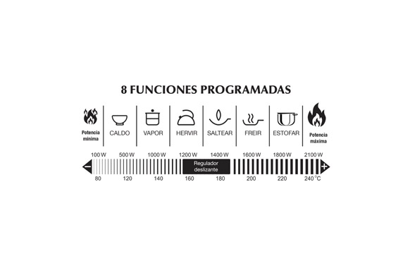 PLACA COCINA INDUCCIÓN JATA. 2100 W. Superficie de cristal de 4 mm. 8 funcionesprogramadas. Pulsadores táctiles: Encendido/apagado, selector de funciones y ajuste del tiempo programado. Pausa. Regulador deslizante de potencia y temperatura. Diámetros de funcionamiento: desde 120 mm hasta 260 mm. Display LED. Indicadores luminosos. Protección contra sobrecalentamiento. Voltaje 230 V.