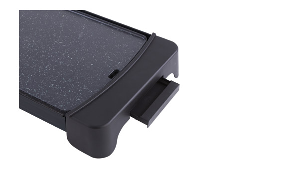 2600 W, resistencia en «M», cocina por igual en toda la superficie, 4temperaturas: 75/120/160/230ºC. Temperatura mínima apta para función de calienta platos. Stonite recubierto antiadherente de alta calidad libre de PFOA. 46 x 28 cm.