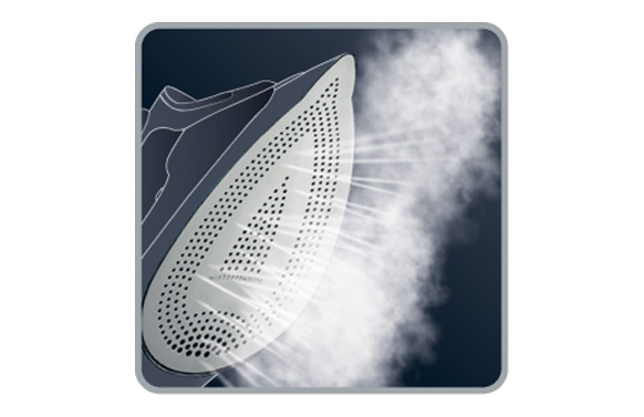2500 W, golpe de vapor 150 g/min, suela inoxidable con 300 microagujeros para una perfecta distribución del vapor, protección antigoteo, modo ECO.