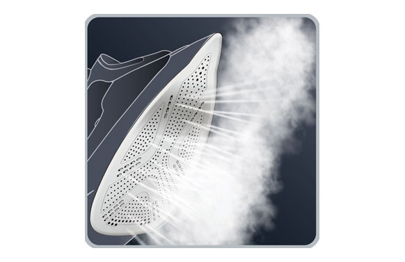 2600 W, golpe de vapor 200 gr/min., vapor continuo 45 g/min, suela inoxidable con tratamiento láser con 400 microagujeros para una perfecta distribución del vapor, función ECO, función antical, depósito de 330 ml.