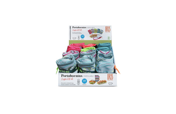 Portabocatas flexible, plano y plegable. Se enrolla con una goma para que ocupe muy poco cuando no lo estamos usando. El interior es impermeable y muy fácil de limpiar con un paño húmedo. Además, es certificado FOOD SAFE, lo que quiere decir que tiene las garantías necesarias para estar en contacto con alimentos. Pensado para llevarlo dentro de un bolso, mochila… Y guardarlo en cualquier sitio.