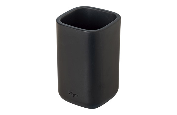 Bote para cepillo de dientes con un diseño de líneas puras, elegante y atemporal. fabricado con poliresina, presenta un aspecto sólido y robusto.» (7,5×7,5×11,5)
