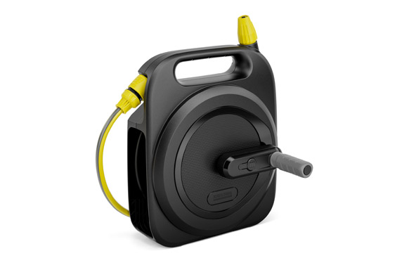 ENRROLLADOR MANGUERA MINI KARCHER. Incluye manguera sin ftalatos de alta calidad de 10 metros. Boquilla Plus, 2 conectores de mangueras con Aqua Stop. Conexión de grifo con elemento reductor. Soporte de pared plano.