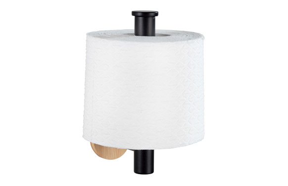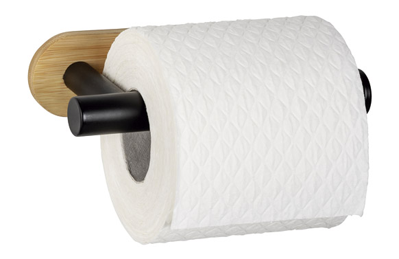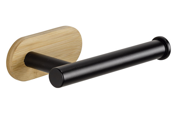 Acero inoxidable esmaltado en negro mate de alta calidad combinado con bambú. Fijación segura con la técnica Turbo-Loc®. Retirar la lámina protectora y colocar. Montaje rápido y sencillo sin herramientas y sin necesidad de taladrar. Se puede quitar sin dejar residuos. Medidas en cm: AN: 16 x AL: 4,5 x P: 8. Acero inoxidable, Bambú