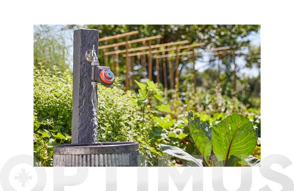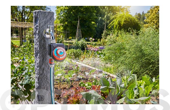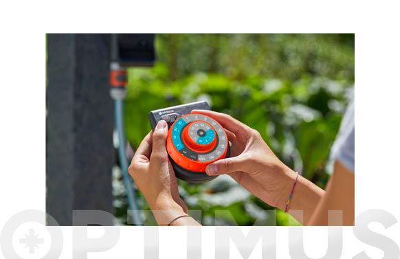 Con el programador de riego GARDENA Easy puedes poner en marcha o parar el riego fácilmente. Funciona con batería y simplemente se conecta al grifo y se ajusta con dos botones rotadores. Se pueden seleccionar diferentes combinaciones de duración y frecuencia de riego. La funciónde retraso del inicio en ciclos de una hora controla el funcionamientode un aspersor o un riego por goteo en el momento que lo desees. Lo mejor es regar pronto por la mañana o a última hora del día. Su unidadresistente a la climatología se puede desmontar. Tiene configuracionesadicionales para el brumizador automático de exteriores: refresca elambiente de forma óptima con pequeños impulsos con mucha frecuencia.
