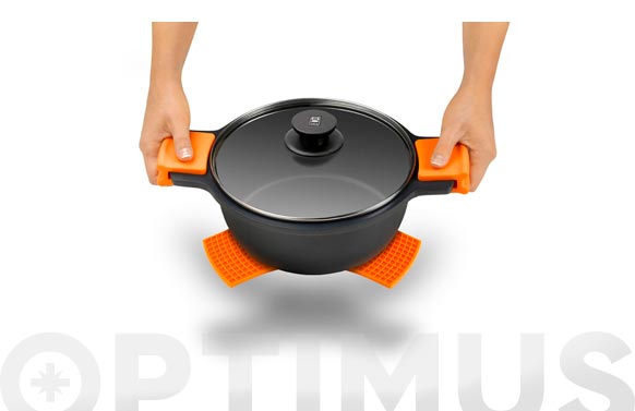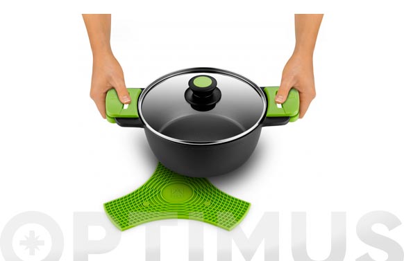 Fabricado en silicona de la más alta calidad. Su diseño único permite3 utilidades en 1 sólo producto: Salvamanteles imantado, manopla y protector de sartenes. De fácil limpieza y apto para lavavajillas. Bra Safe resiste hasta 250ºC.