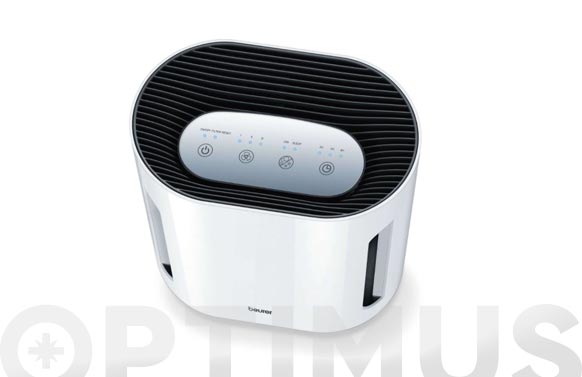 BEURER LR-210 PURIFICADOR DE AIRE. Potencia: 60 W. – Limpieza del airemediante un sistema de filtrado de 3 capas: pre-filtro, filtro HEPA 13 y filtro de carbón activo. – Limpieza del aire mediante un sistema de filtrado de tres capas: polvo fino, polvo doméstico, pelos de animales, olores, polen, diversas bacterias y virus, así como gases nocivosse filtran del aire. – Función ionica para limpieza adicional.- Para espacios de hasta 10m2-26 m². – Función de temporizador. – 3 niveles de ventilación. – Con panel de manejo luminoso. – Filtro sustituible indicador cambio de filtro. · Pre-filtro + filtro de combinación:693.01. · (Tiempo de duración del filtro: aprox. 4.320 h). – Conel modo noche: especialmente silencioso y con panel tenue. Adecuado para estancias de 10 m².