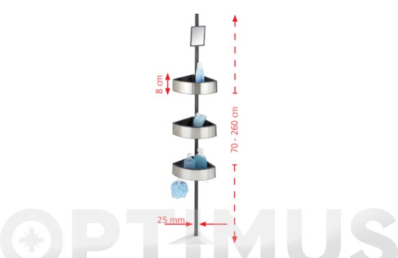 RINCONERA DE DUCHA TELESCOPICA PREMIUM BIG BLACK Barra telescópica de70 a 270…