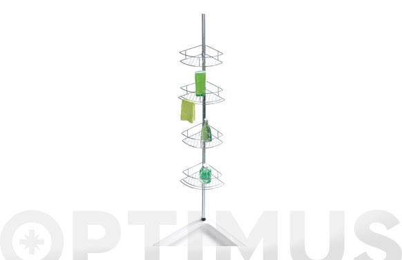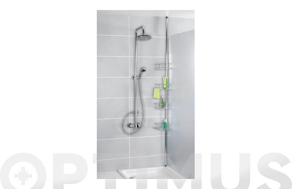 RINCONERA DUCHA TELESCOPICA INOX (An x Al x L): 69,5 x 29,5 x 5,5 cm.Barra telescópica extensible hasta máx. 275 cm. De uso universal en la cabina de ducha, la esquina de la bañera o el cuarto de baño. Con una bandeja para colocar y enganchar toallas de mano, de ducha o de baño. De acero fino inoxidable brillante. 4 cestas