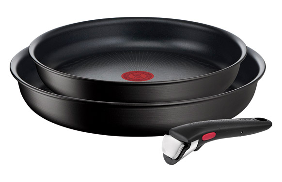 Set 2 unidades Ø 22 – 26 cm + Mango extraíble robusto. Titanio antiadherente y antirrayaduras. Tecnología Thermo-Signal. Inducciónsuperior. Para todo tipo de fuegos. Fabricado en Francia.