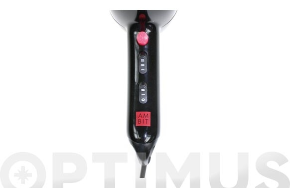 Secador profesional AC Iónico Ambit. 2200 W, 2 velocidades, 3 temperaturas, pulsador de aire frío, incluye boquilla estrecha y difusor. Cable redondo de 2 metros. Compacto.