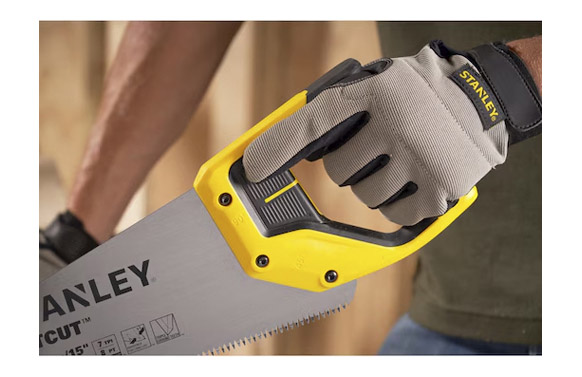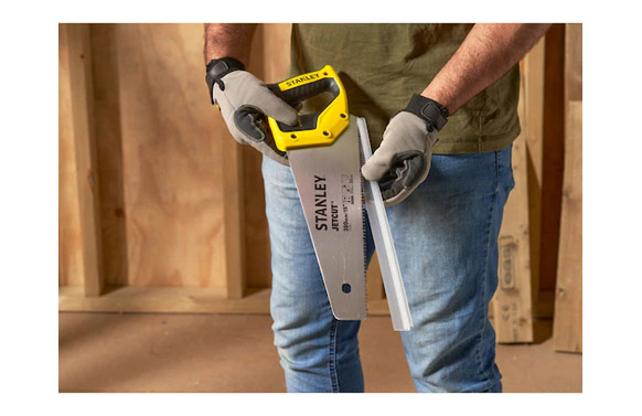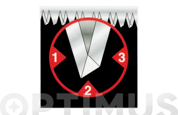 Serrucho con mango de material sintético soldado que permite el trazado a 45º y 90º. Triple ángulo de corte. Hoja de acero de calidad sueca de 0,85 mm de espesor.
