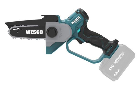 SIERRA PODADORA A BATERÍA WESCO. Motor de 18 V. Espada de 12 cm. Peso 1.20 kg. Funciona con una batería de 18 V no incluida.