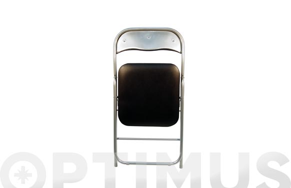 Silla plegable con asiento acolchado y respaldo en polipiel de color negro. Tubo de 19 mm. Grosor del tubo 8 mm.