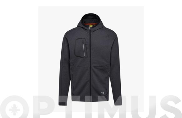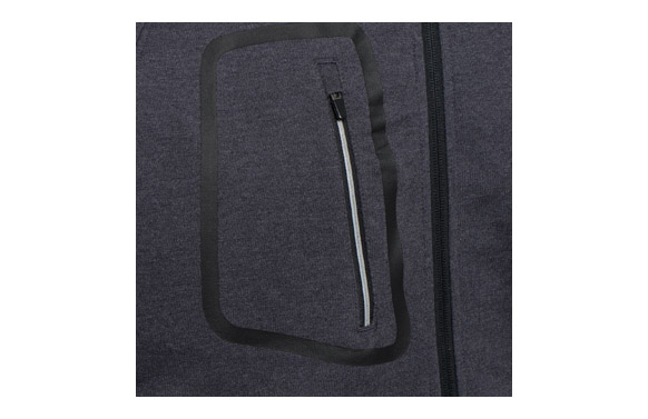 Sudadera elástica sin perchar con cremallera entera y capucha fija conforro de rejilla. Bolsillo en el pecho con cremallera y dos bolsilloslaterales con cremallera oculta. Puños y bajo con canalé parcial. Manga ergonómica con pinza en el codo. Detalles reflectantes y tiradorescam lock autobloqueantes.