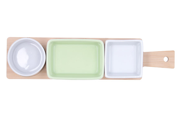 TABLA APERITIVO BAMBU CON MANGO 3 CUENCOS KALEIDO