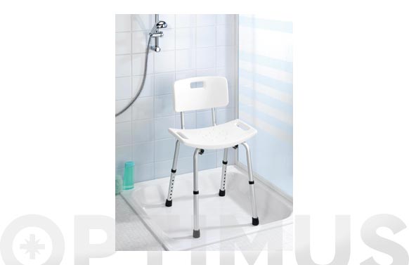 TABURETE CON RESPALDO AJUSTABLE Asiento y respaldo de plástico de altacalidad. Patas de aluminio regulables en 8 posiciones de 34 a 52cm. Capacidad 130kg. 50 x 51,5x 65,5-83,6 cm. Superficie asiento: 35 x 27 cm.