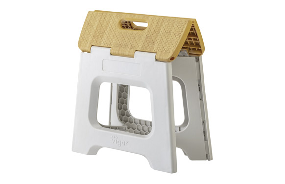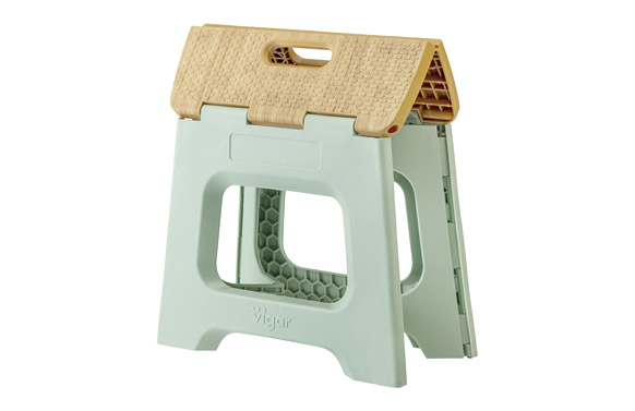 Taburete de 27 cm de altura con un sistema de plegado total. resiste un peso máximo de 150kg/330lb. la superficie superior es antideslizante, así como la base de las patas, lo cual ayuda a la estabilidad y garantiza la máxima seguridad en su uso. asas internas. (33x27x27)