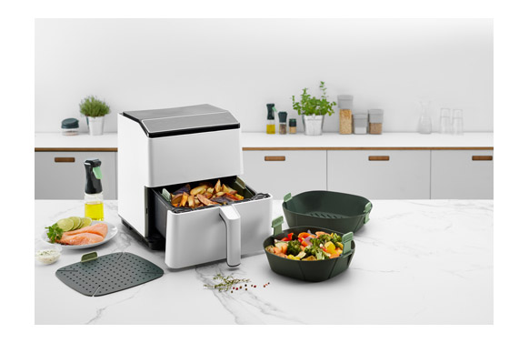 Silicona de alta calidad. Uso: Optimiza el flujo de aire caliente en la freidora, cocinando los alimentos de manera rápida y uniforme. Adaptable a diferentes tamaños y formas de freidoras de aire, ya sean cuadradas o redondas. Temperatura: Resistente a temperaturas desde -20ºC hasta +220ºC. Dimensiones: 22.5 cm x 22.5 cm x 2.5 cm.