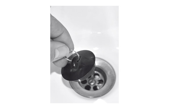 Tapón de goma estándar para lavabo o fregadero, diseñado con un saliente con orificio para arandela y presentado en blíster.
