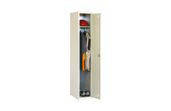 TAQUILLA 1 CUERPO SIMONLOCKER. Fabricado en acero. Compuesto por un único bloque de taquilla individual. Tiene 1 estantes e incluye cerradura, llave y placaAcabado en pintura epoxi color gris. Se entrega ya montado. Dimensiones: 180X30X50cm. Hecho en España