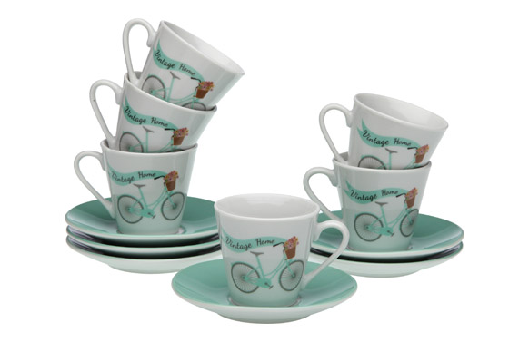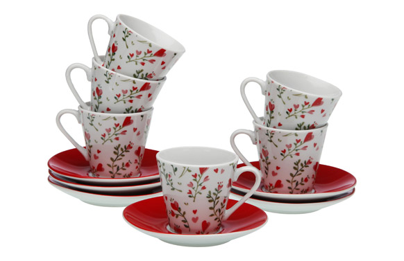 Juego de 6 tazas de café con plato Lover, de 8 cl de capacidad. Porcelana. Apto para lavavajillas y microondas. Viene en caja regalo.