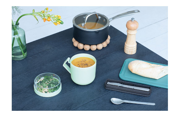 Taza para llevar sopas. Hasta 600 ml de sopa. 100% a prueba de escapes. Práctica – contenedor para condimentos enroscable (180 ml). Siempre crujientes – el contenedor de condimentos los mantiene secos. Se llena fácilmente gracias a su gran abertura. Adiós a las quemaduras – taza con asa.Higiénica – el asa inclina la botella para un mejor secado boca abajo.Se limpia fácilmente – apta para el lavavajillas. Multifuncional – apta para el microondas y el congelador. Libre de BPA. Reciclable.