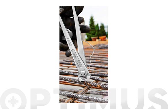 25 % de ahorro en fuerza en comparación con tenazas de ferrallista convencionales del mismo tamaño. Por su formato especialmente estilizado,también para unir hierros ubicados en profundidad. Para fijar la ferralla en el hormigón armado con alambre de atar. Torsiona y corta el alambre durante el proceso de trabajo. Articulación con elevada multiplicación, lo que permite trabajar sin esfuerzo incluso utilizando alambres de atar más gruesos. Potente amortiguación que evita sobre cargas ydolores en tendones y músculos en el momento del corte. Filos de corte templados adicionalmente; dureza de los filos aprox. 61 HRC. Acero especial para herramientas de excepcional calidad, forjado, templado alaceite en varias etapas. Capacidad de corte alambre duro (diámetro)2 Ø mm. Capacidad de corte alambre semiduro (diámetro) 3,8 Ø mm. Anchura de la cabeza 25 mm. Longitud 300 mm.