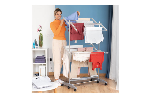 TENDEDERO ELÉCTRICO.Abs, acero inoxidable. Plegable 12 barras . 2 baldas…