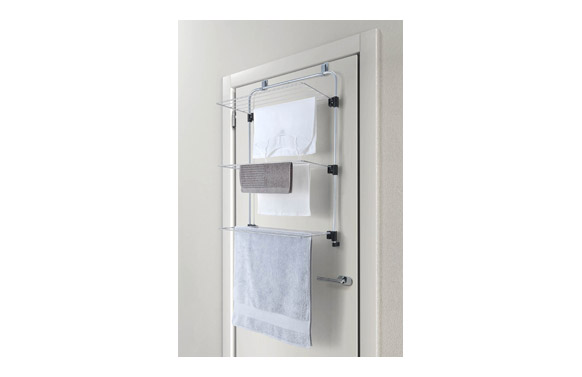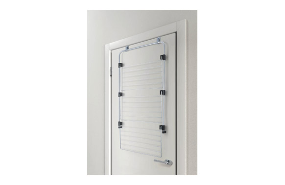 Tendero para puerta o mampara ducha. Con 3 rejillas abatibles recubrimiento Epotherm. Ganchos para colgar reversibles, para puertas de diferentes grosores. Made in italy. Capacidad 11cm.
