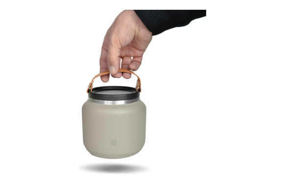 Termo de acero inoxidable de alta calidad para llevar comida. Doble pared. Con una eficiencia térmica de 6 horas para comidas calientes y 12 horas, para frías. Tiene tapa de cierre de rosca y asa de polipiel. Es recomendable no mojar la cinta. El resto del termo se puede lavar a mano. Incluye manual de instrucciones.