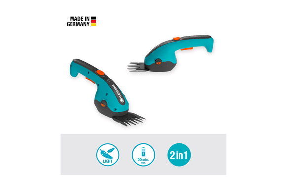 Tijera cortacésped Accu ClassicCut LiPotencia batería 3,6 V integrada / 2,5 AhCargador Cable USB-CPeso 550 g. Duración batería 50 min maxAncho de corte 8 cm
