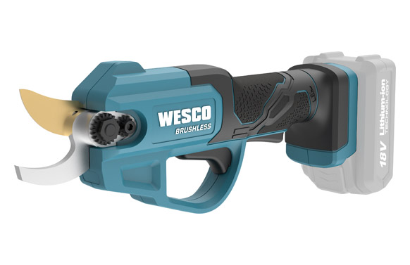 TIJERA DE PODA A BATERÍA WESCO. Motor de18 V, apertura de poda máxima 25 mm, Funciona con una batería de 18V no incluida.
