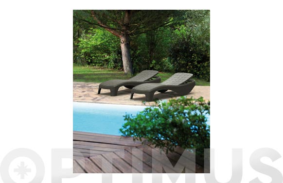 Cuerpo monoblock de ratán de resina color gris antracita, apilable, respaldo 5 posiciones, 197 x 74 x 36 cm