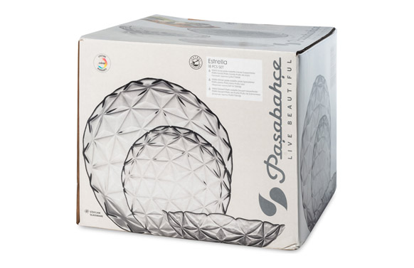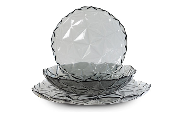 Vajilla de Cristal, 18 piezas. Color gris transparente.