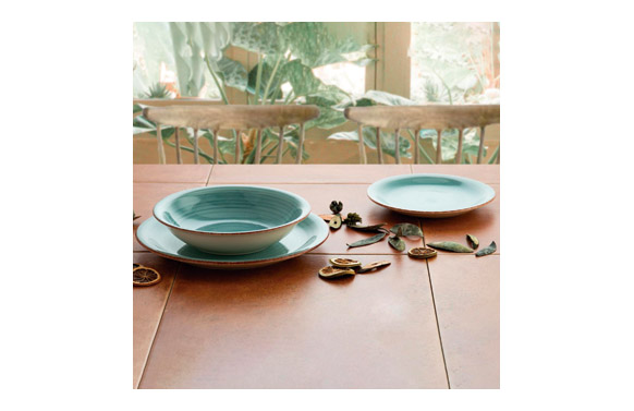 VAJILLA 18 PZAS GRES. Turquesa.