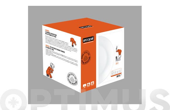VIDRIO OPAL. 19 piezas, blanca. 6 platos llanos 25cm, 6 platos hondos20cm, 6…