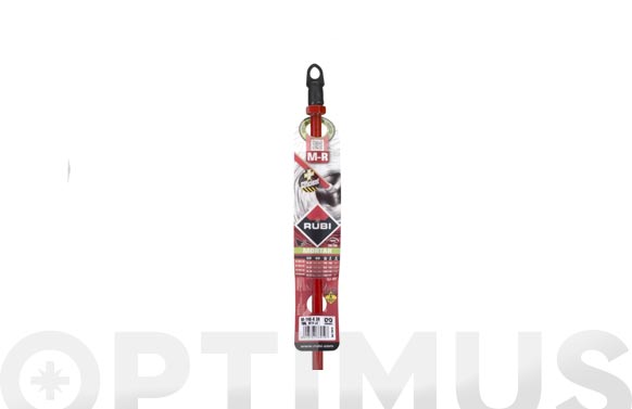 VARILLA MEZCLADOR MORTERO COLA RUBI. Conexión rosca M-14. Diámet. Lasvarillas mezcladoras para morteros cementosos presentan un cabezal diseñado para realizar un movimiento de abajo hacia arriba. Con las varillas mezcladoras para morteros, el material asciende, a baja velocidad,por el interior del cabezal de la varilla, para descender por el exterior del mismo. Esta acción permite la mezcla homogénea de materialesmuy viscosos como morteros, cementos y en especial de adhesivos cementosos mejorados (tipo C2) para baldosa cerámica. Este diseño de cabezalpermite que el usuario pueda trabajar con menor esfuerzo y mayor movilidad. Las varillas 3H disponen de un cabezal hélice con 3 palas parauna mayor eficiencia en el mezclado. Este diseño incrementa el rendimiento en un 15% respecto al cabezal hélice de 2 palas. Además, duranteel mezclado, se reduce el esfuerzo para el mezclador eléctrico, consiguiendo para la herramienta electroportátil una mayor durabilidad. Elcabezal de 3 palas genera menos vibraciones.