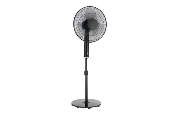 VENTILADOR PIE SONEDAS NEGRO CON MANDO. Ø40cm 40W. Función temporizador 7h y mando a distancia. 3 velocidades: normal, brisa y noche Oscilante 80º y orientable 30º. Altura ajustable 115-130cm. Base circular.