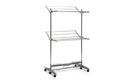 TENDEDERO ELÉCTRICO.Abs, acero inoxidable. Plegable 12 barras . 2 baldas…